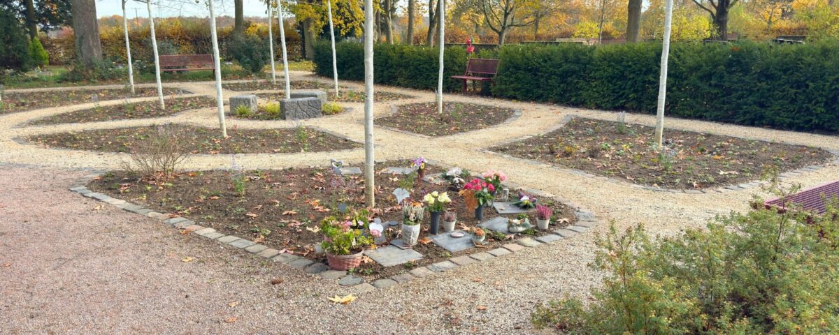 - Die Position der Grabstätte auf dem Friedhof kann nicht gewählt werden. Die Belegung erfolgt im jeweiligen Grabfeld der Reihe nach.